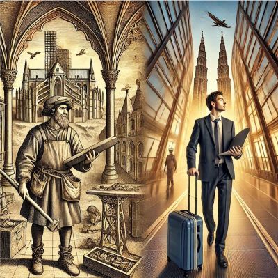 Zum Glück waren hochspezialisierte Fachkräfte bereits im Mittelalter mobil und so zogen wandernde Steinmetze, Glasmaler und Zimmerleute von Stadt zu Stadt, von Bauhütte zu Bauhütte. Neben ihren handwerklichen Fähigkeiten reisten auch Werkzeuge, Techniken und Stile mit ihnen – von der Gotik bis zur Renaissance. Ohne diese Mobilität hätten viele Städte ihre beeindruckenden Bauwerke wohl nie realisieren können.